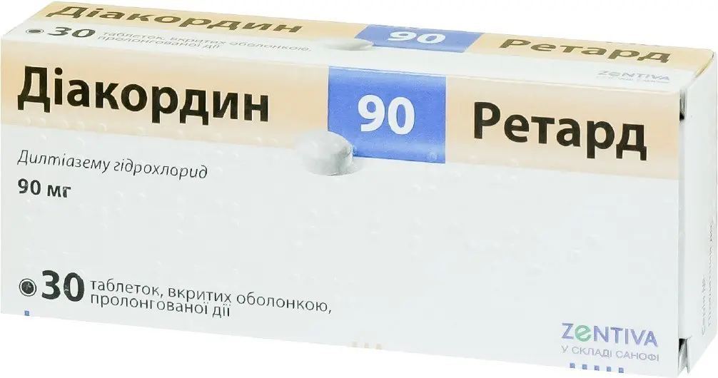 Diacordin (diltiazem) 90 Retard Coated Tablets 90 mg. is a medication used to treat various conditions related to the heart and blood vessels. This medicine belongs to a class of drugs known as calcium channel blockers. Each pack contains 30 tablets, each with a dosage of 90 mg.