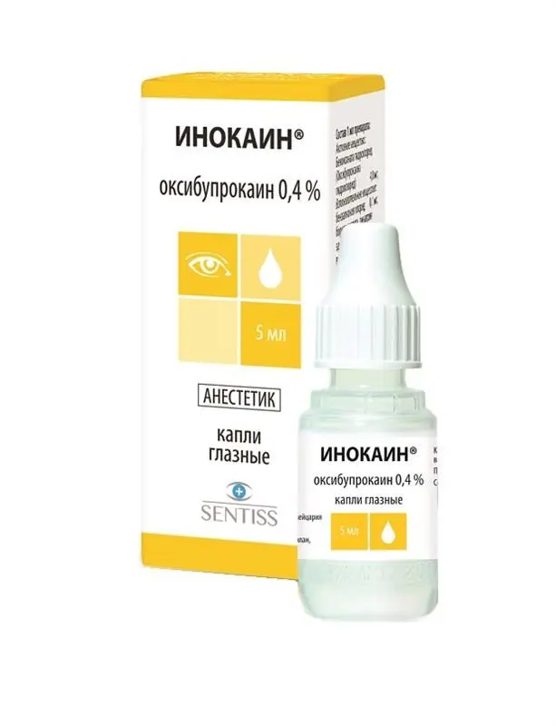 Inocain Eye Drops is a medication that contains the active ingredient tetracaine hydrochloride in a concentration of 0.4%. It is commonly used to provide temporary relief from eye discomfort or pain caused by minor irritations or procedures such as eye examinations or surgeries. The solution works by numbing the surface of the eye to alleviate pain and discomfort.