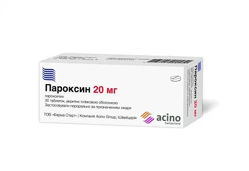 Paroxin (Paroxetine Hydrochloride) Coated Tablets 20 mg.