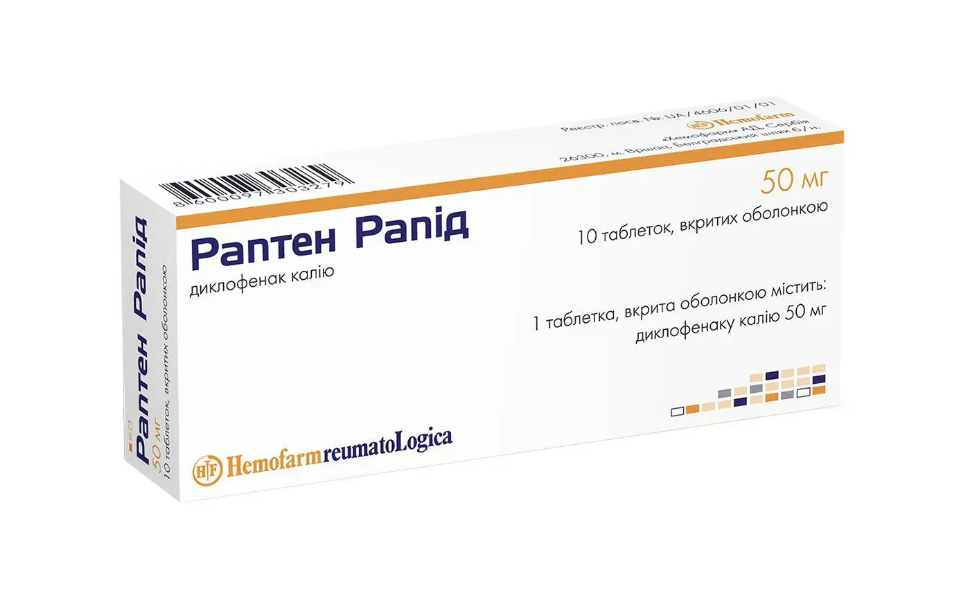Rapten Rapid (diclofenac potassium) tablets 50 mg. #10