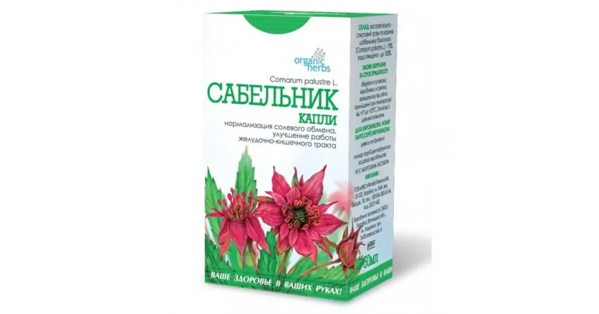 The main ingredient in Sabelnik drops is the roots of the marsh cinquefoil plant (Latin name: Comarum palustre). The roots are harvested and processed to extract the beneficial compounds that provide the medicinal properties of the plant.