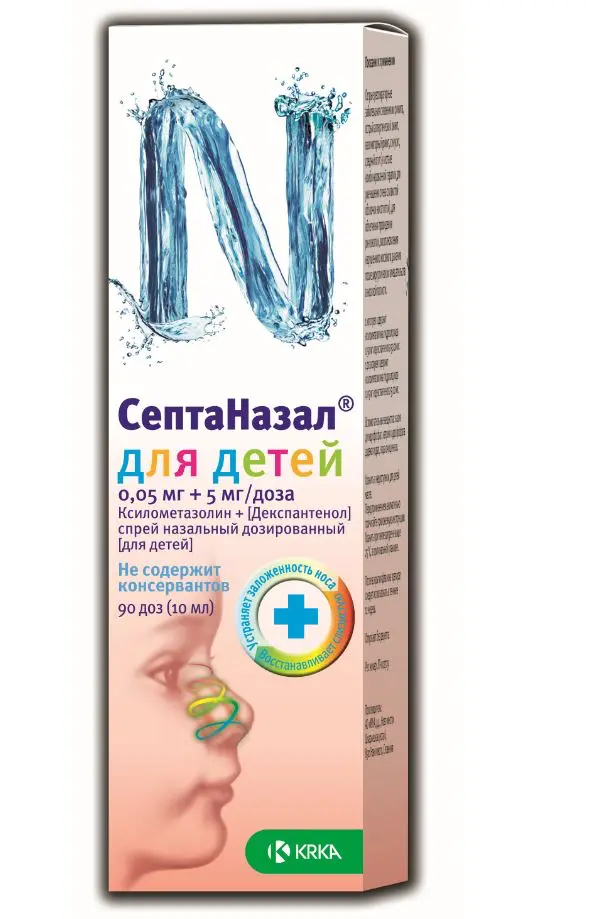 Septanazal for children (xylometazoline, dexpanthenol) nasal spray 0.5 mg/50 mg/ml. 10 ml.