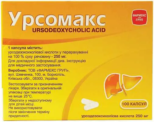 Ursomax (ursodeoxycholic acid) capsules 250 mg. #100